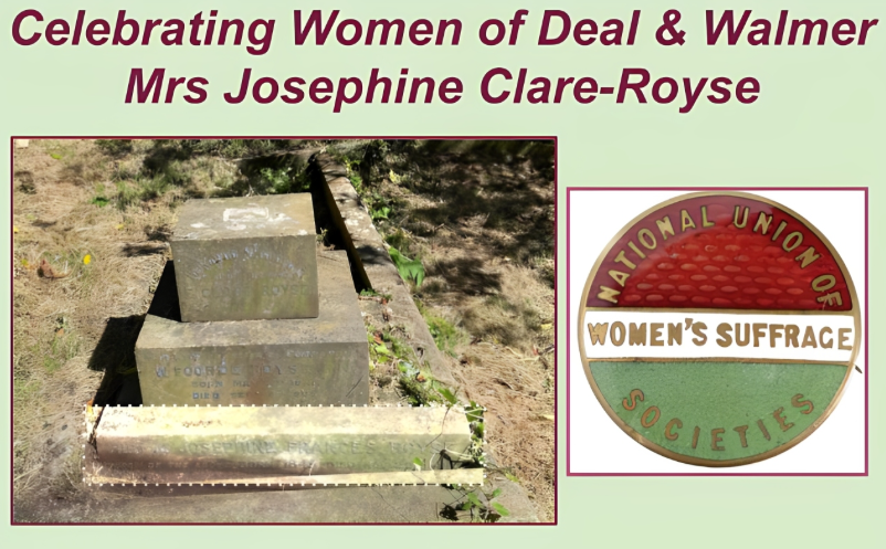 Josephine by this time was very ill. She died in 1919 and was buried in Walmer’s St. Mary’s Church. Despite her involvement with the NUWSS, the WCA and a lifetime of supporting many local charitable organisations, which included the St. Saviour’s Dorcas Society (an organisation that provided clothing and other necessities to people in need), the Walmer Parish Guild, Walmer Mission Reading Circle, the National School at Walmer, and the Deal & Walmer Clergy Pension Fund; as well as being an inspector of Homes for the Mentally Deficient, an active member of the Deal and Walmer Belgian Refugee Committee in WW1, and the Ladies Work Society (which she founded in 1903 to help ladies in reduced circumstances to help themselves), she was sadly soon forgotten!